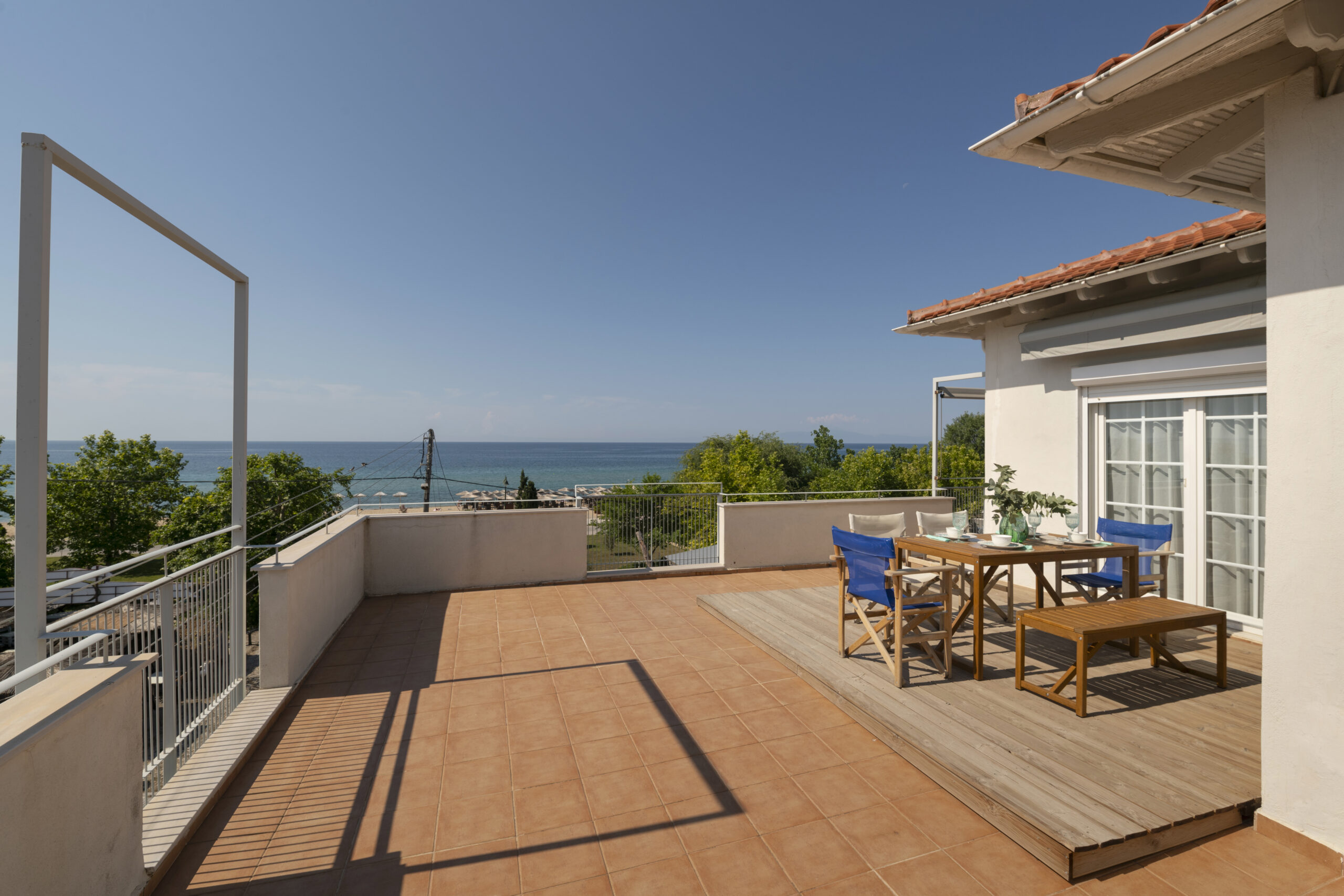 Εξαιρετικά μεγάλο και φωτεινό ρετιρέ διαμέρισμα 86 τ.μ. με τεράστιο ιδιωτικό μπαλκόνι και απεριόριστη θέα στη θάλασσα. Αποτελείται από δύο ευρύχωρα υπνοδωμάτια με διπλό κρεβάτι, ένα μεγάλο σαλόνι με διπλό καναπέ που γίνεται κρεβάτι με ειδικό ανατομικό στρώμα, μια πλήρως εξοπλισμένη κουζίνα και ιδιωτικό μπάνιο με ντουζιέρα. Η σουίτα διαθέτει τηλεόραση LED, κλιματισμό και δωρεάν Wi-Fi. Μπορεί να φιλοξενήσει άνετα 6 άτομα και βρίσκεται μόλις 30 μέτρα από τη θάλασσα.
